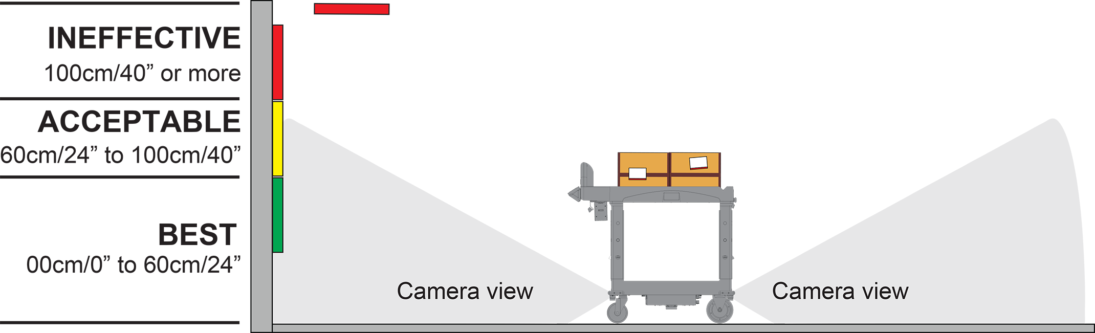 - Same goes for vertical height: for optimal effectivity, AprilTag placards should be mounted below 60cm/40" for the highest visibility. Note that this maximum is measured from the floor to the top of the placard.